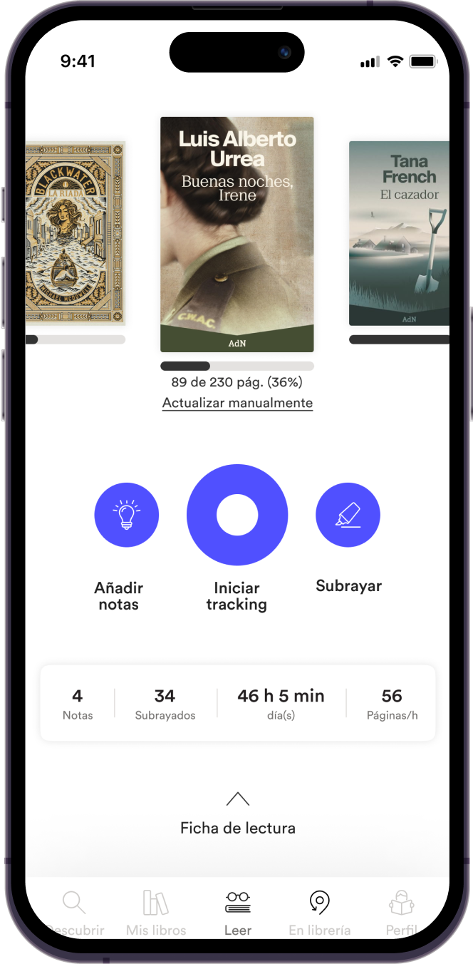 Trackea tus sesiones de lectura, subraya y crea notas. ¡Cumple tus objetivos de lectura y da vida a tus libros!
